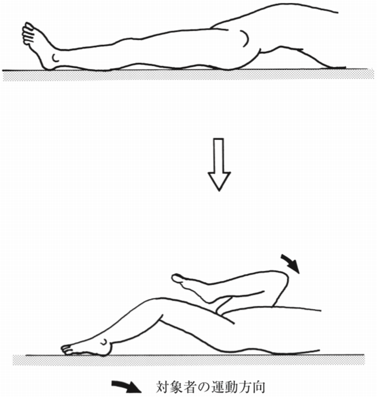 図のように右股関節を最大屈曲させた際に、左大腿部の挙上がみられた。
